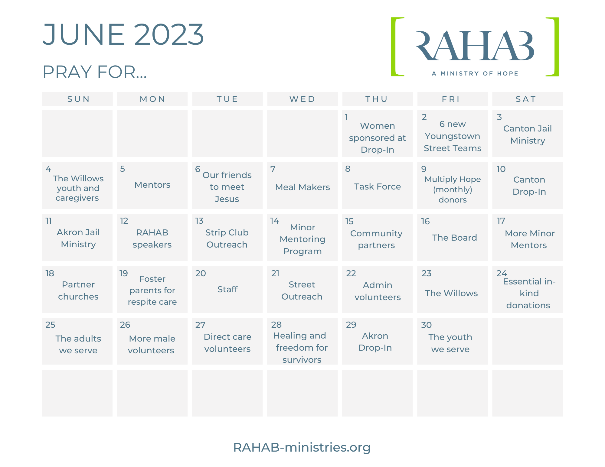 June Prayer Calendar